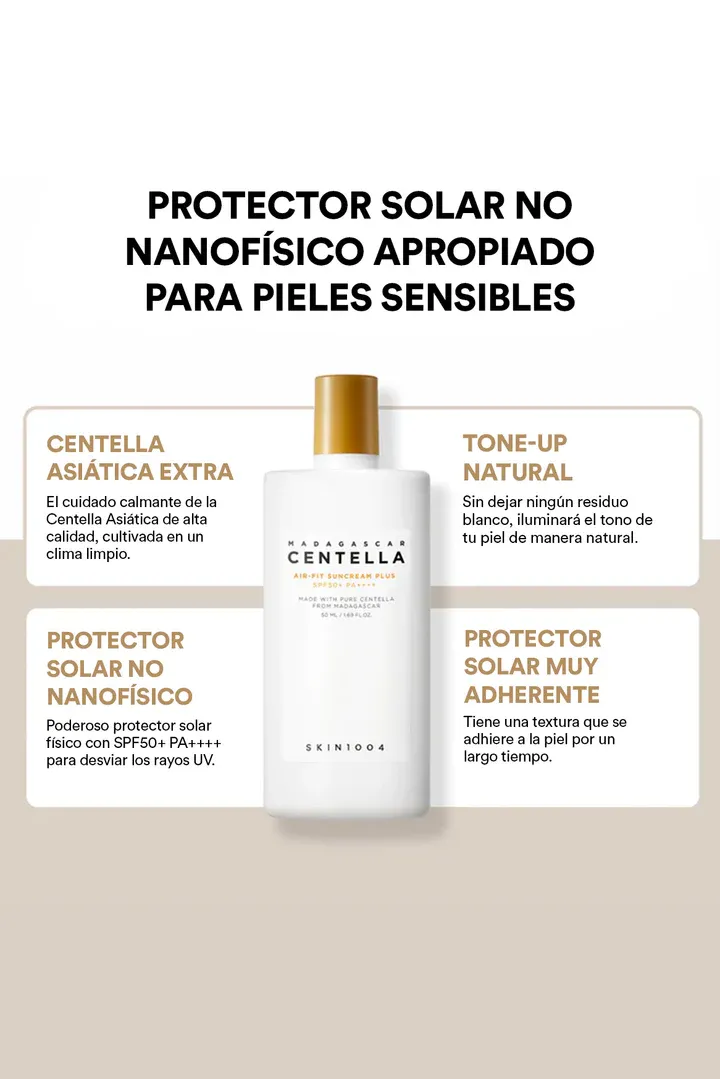 Madagascar Centella Air-fit Suncream Plus de SKIN1004 es la solución perfecta 💜. Con