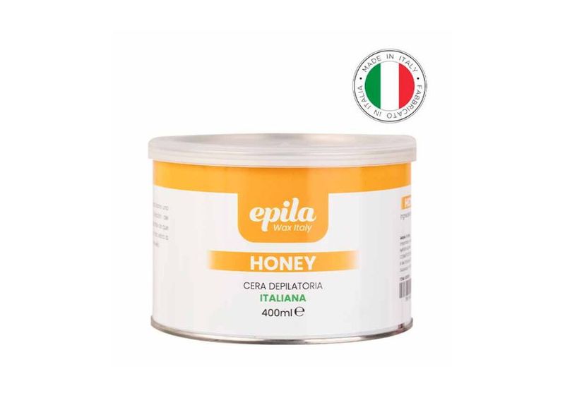 Cera Depilatoria Honey 400ml - EPILA, cera liposoluble formulada con extracto de miel que permite una depilación efectiva desde la raíz, dejando la piel suave y tersa. Su textura adherente y fácil de aplicar facilita la extracción del vello sin romperlo, ayudando a reducir la irritación. Ideal para uso corporal y para todo tipo de piel. Se utiliza con bandas depilatorias para un resultado profesional.