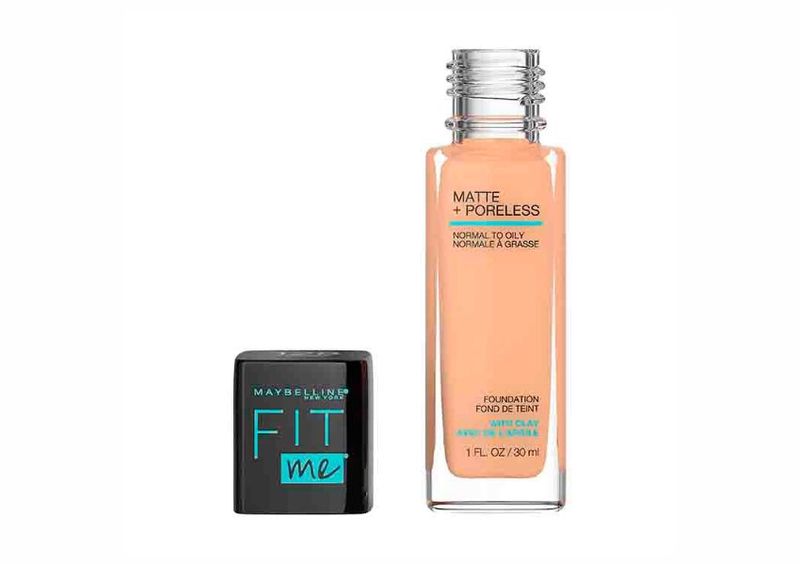 La base líquida Fit Me Matte + Poreless en el tono 128 Warm Nude ofrece una fórmula ligera diseñada para controlar el brillo y minimizar la apariencia de los poros, ideal para piel normal a grasa.