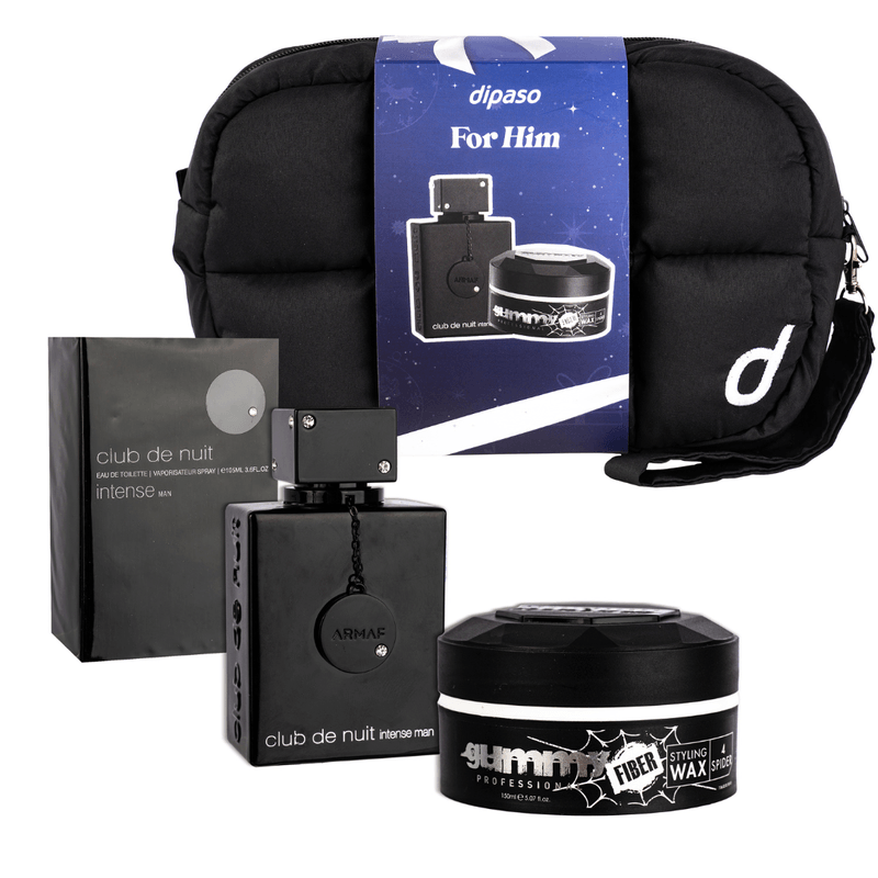 - Incluye: Perfume Club de Nuit Intense Man 105 ml + Cera Profesional Look Spider Gummy + Bag acolchado negro con logo Dipaso.