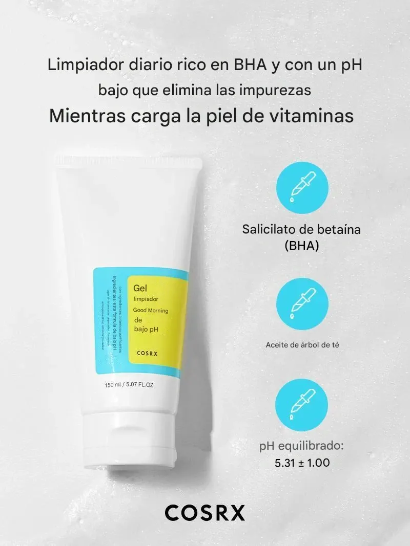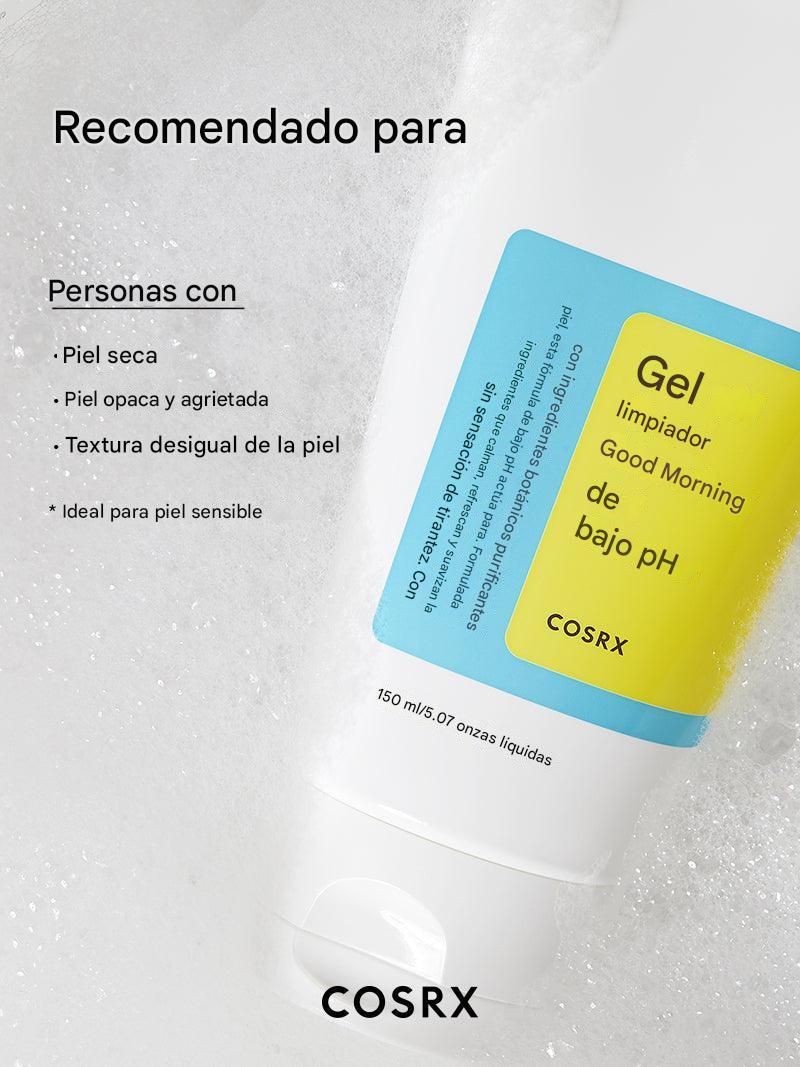 El Gel Limpiador Low Ph 150ml de COSRX es ideal para una limpieza facial delicada que mantiene el equilibrio natural de la piel.
