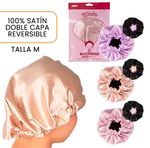 Gorro de satín en talla M con moño decorativo, perfecto para proteger el cabello mientras duermes o durante tu rutina de cuidado capilar. Ayuda a reducir el frizz, prevenir quiebres y mantener la hidratación natural del cabello, dejándolo suave, manejable y con un aspecto saludable. Ideal para cabellos medianos o con volumen moderado.