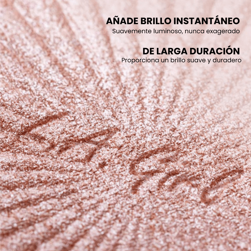 Modo de uso: Aplica sobre los puntos altos del rostro (pómulos, arco de cupido, centro de la frente) y difumina para un brillo suave y luminoso.