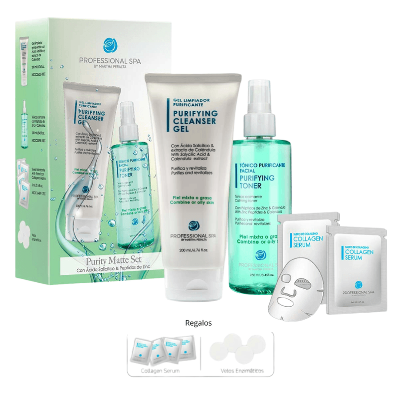 El kit purificante Profesional Spa es un conjunto de productos diseñados para brindar una experiencia de spa en casa, enfocada en la limpieza y purificación de la piel. Por lo general, este tipo de kit incluye varios productos que trabajan en conjunto para limpiar profundamente los poros, eliminar impurezas y revitalizar la piel.