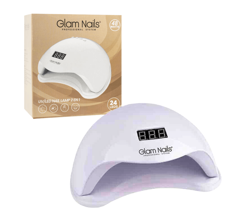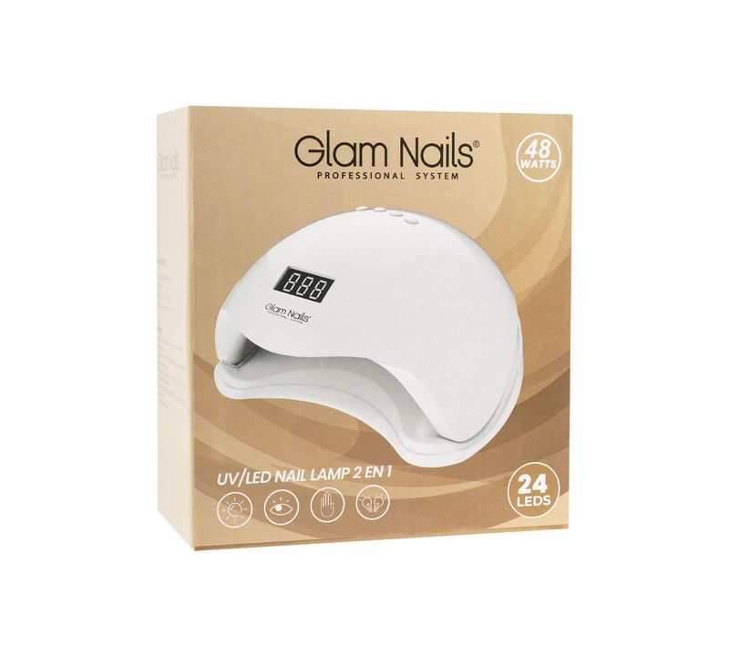 La Lampara UV 48W 24/LED 2 en 1 de GLAM NAILS es una herramienta esencial para el secado rápido y efectivo de uñas en gel y acrílicas. Su diseño combina tecnología UV y LED para ofrecer un rendimiento versátil y eficiente.