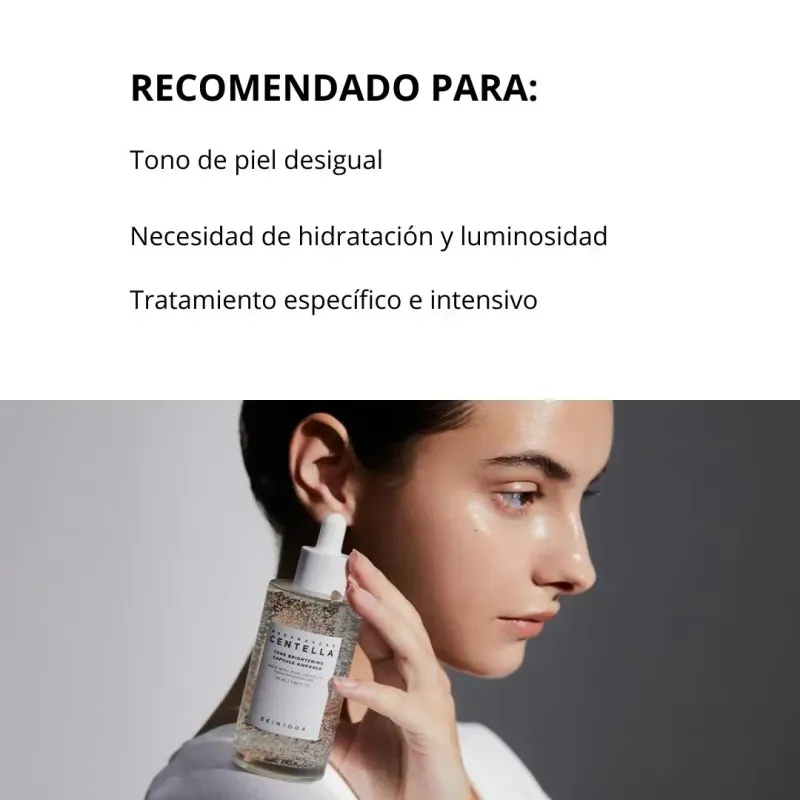 Centella Madagascar Tone Brightening Capsule Ampoule de SKIN1004 es tu solución perfecta 💜. Su fórmula con