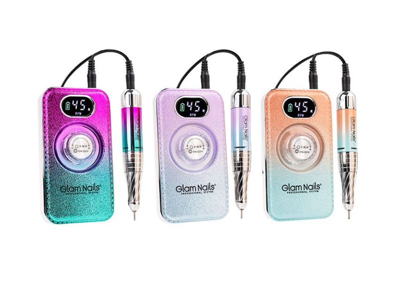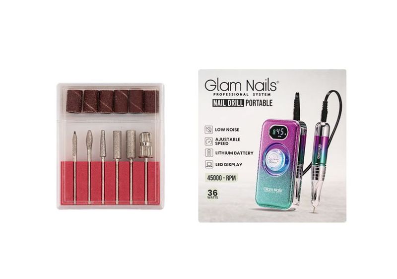Máquina Pulidora Recargable 36W 45000RPM - GLAM NAILS, torno profesional para uñas con alta potencia y velocidad ajustable hasta 45,000 RPM, ideal para trabajos de manicura y pedicura. Permite limar, pulir, retirar acrílico y gel con precisión, ofreciendo un rendimiento estable y silencioso. Diseño recargable y portátil, perfecto para uso profesional o en casa.