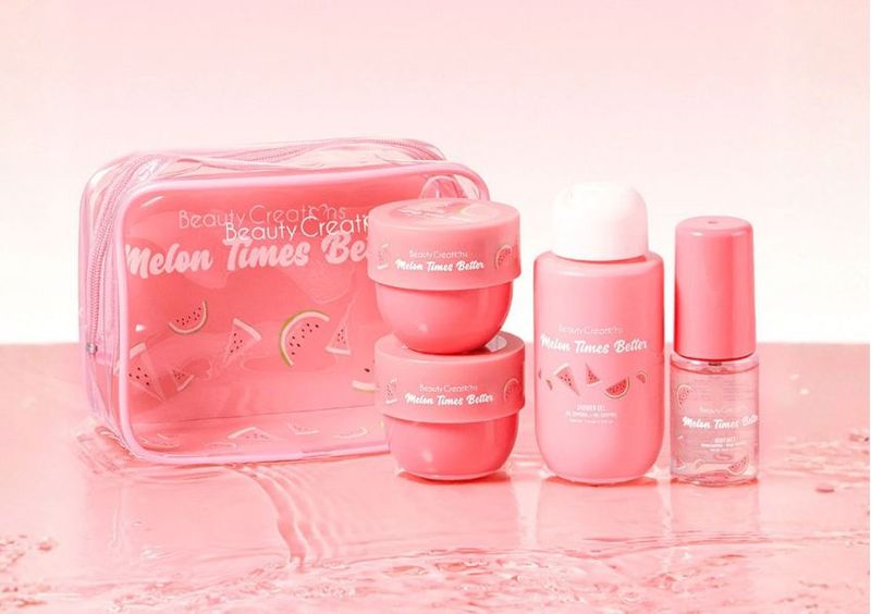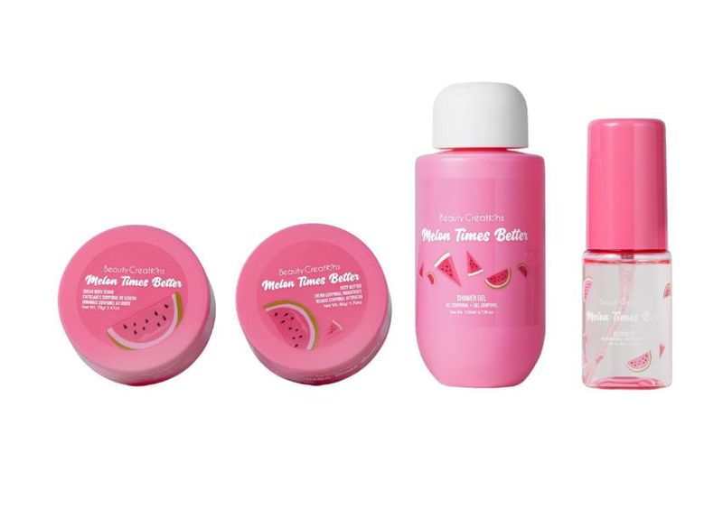 El Set Corporal de Viaje Melon Times Better de BEAUTY CREATIONS es perfecto para quienes buscan cuidar su piel mientras están en movimiento. Este kit compacto incluye cuatro productos esenciales con una fragancia fresca y dulce a melón que revitaliza los sentidos.