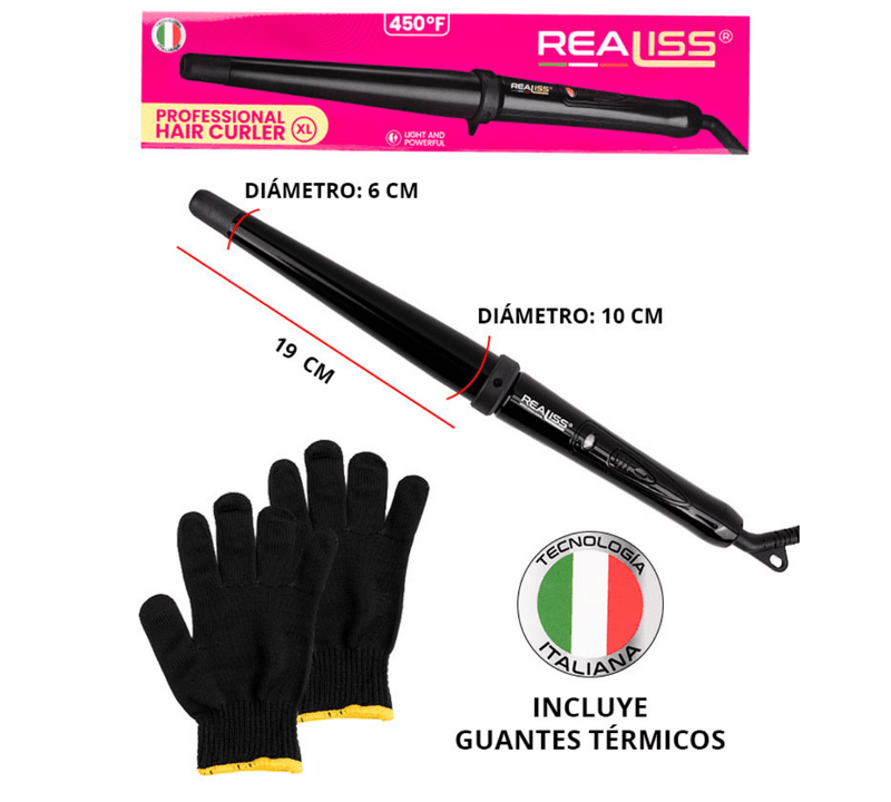 La Tenaza Professional XL 450°F de REALISS es la herramienta ideal para crear rizos definidos y ondas glamorosas con un acabado duradero. Diseñada para alcanzar temperaturas de hasta 450°F, permite obtener resultados rápidos y efectivos en todo tipo de cabello.