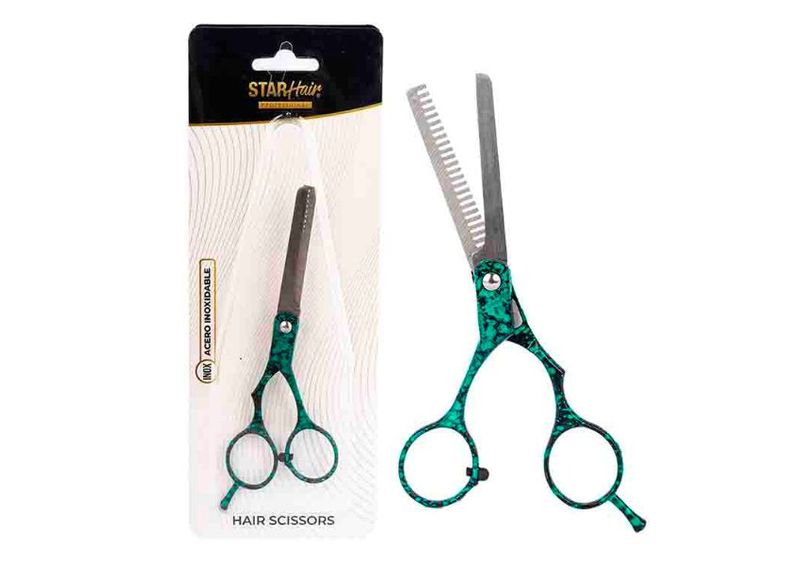 La Tijera Entresacar 5.5” de Star Tool es ideal para reducir volumen y dar textura al cabello con precisión y control. Diseñada para estilistas y barberos, permite lograr acabados naturales sin dañar la fibra capilar.